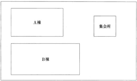 〔マンション管理士過去問 平成29年-問10〕 一団地内に下図のとおり、専有部分のある建物であるA棟、B棟及び附属施設である集会所が存在し、A棟及びB棟の団地建物所有者が土地及び附属施設である集会所を共有している。この場合に関する次の記述のうち、区分所有法の規定によれば、誤っているものはどれか。